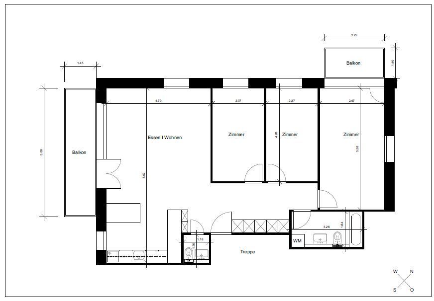 Entrée, Wohnen/Essen, offene Küche, 3 Zimmer, 1 Nasszelle bestehend aus WC/Lavabo, 1 Nasszelle bestehend aus WC/Bad/Lavabo/Waschmaschine, 2 Balkone, Abstellraum, abschliessbares Kellerabteil