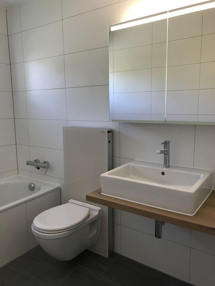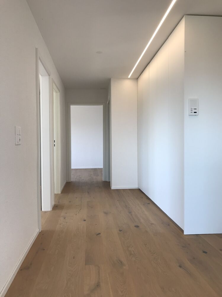 Die tolle 4.5-Zimmer Wohnung liegt im 3. OG eines 6-Familien-Hauses. Lichtdurchflutete Räume und ein topmoderner Innenausbau überzeugen auf der ganzen Linie. Es ist die Verbindung zwischen Holz und Gips, gepaart mit einer schlichten Architektur, die diese Wohnung so attraktiv erscheinen lässt. Hier fühlt man sich sofort wohl und heimisch und möchte sofort mit dem Einrichten beginnen. Die helle Küche mit den modernen Kochgeräten lädt ein zum gemeinsamen Kochen. Es gibt genügend Ablageflächen dank einer grossen Rüstinsel. So macht Kochen richtig Spass. Die offene Küche grenzt direkt an den Wohn/Essbereich. Es gibt zwei Balkone, auf denen Sie relaxen und die traumhafte Weitsicht in die fantastische Alpenwelt geniessen. Ein grosser Pluspunkt sind die Einbauschränke, die für Stauraum sorgen. Die schöne Wohnung verfügt über zwei Nasszellen. Eine davon ist mit Waschmaschine ausgestattet. Zur Wohnung gehören zudem ein Abstellraum und ein abschliessbares Kellerabteil. Eine Waschküche und ein Veloraum stehen zur gemeinschaftlichen Nutzung zur Verfügung. Eine abschliessbare Einzelgarage inklusive Aussenparkplatz kann zum Preis von CHF 17`000.- dazu erworben werden.